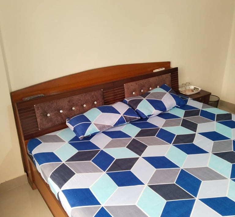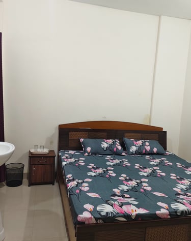 Comfortable rooms under 1000/- with basic amenities like towel, soap, and a welcome kit for a pleasant stay.